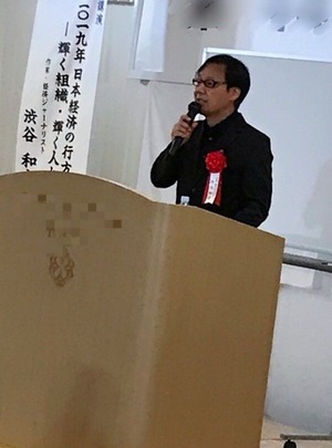 ご講演テーマは、「2019年 ⽇本経済の⾏⽅─輝く組織・輝く⼈は」